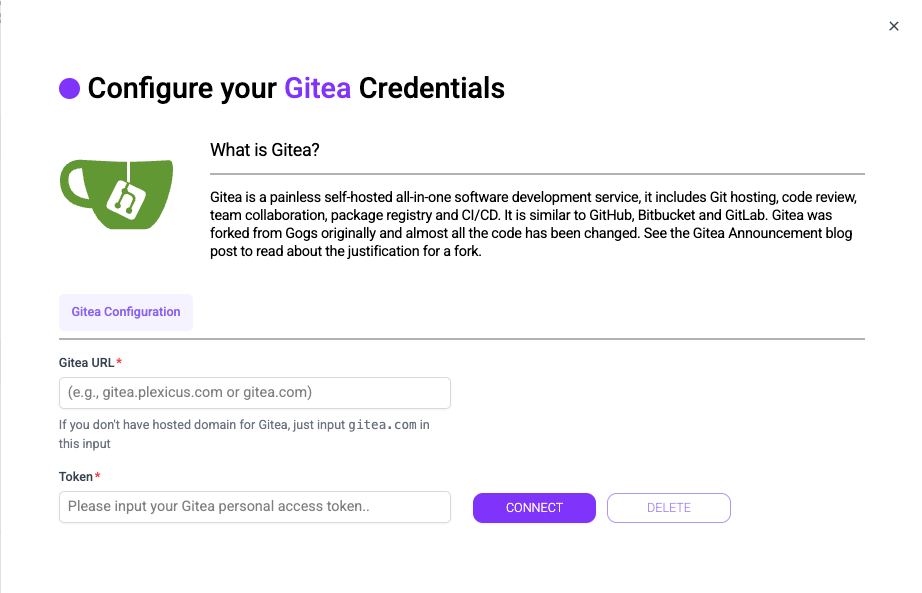 Follow these steps to connect your Gitea account: